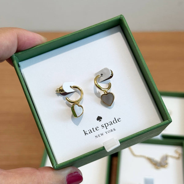 KATE SPADE FLOWERS HUGGIES HOOP EARRING MOP BOXED