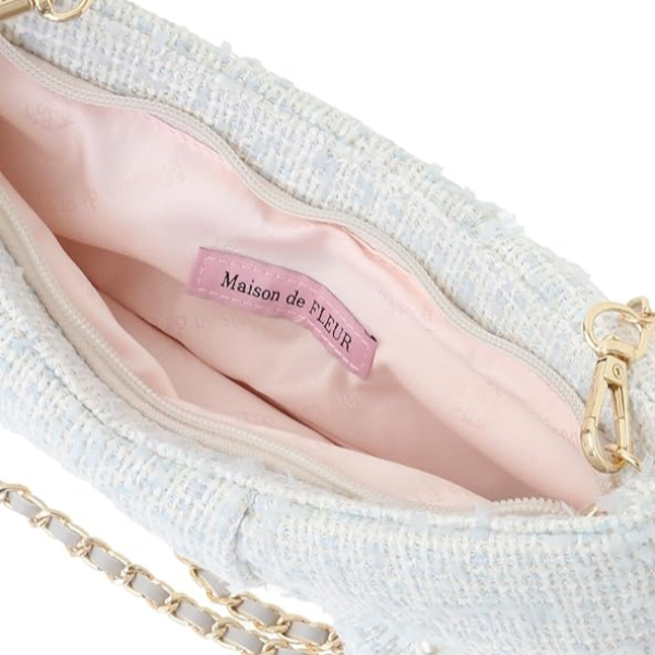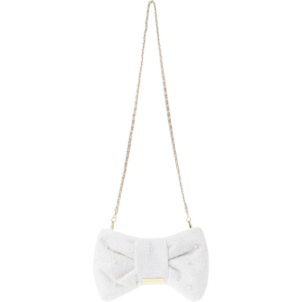 MAISON DE FLEUR FROM JAPAN 2 WAY TWEED RIBBON-SHAPED SHOULDER / CROSSBODY BAG CUM CLUTCH IVORY